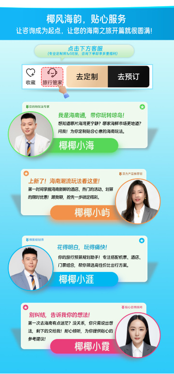 9:00-11:00£º×¨³µ½ÓËÍÖÁÈýÑÇÍåÒ¬Ãγ¤ÀÈ£¨ÓÎÍæÊ±³¤2Сʱ£©£¬º¢×Ó¿ÉÆïÐÐÇ××Ó×ÔÐгµ¡¢¹ÛÉÍÈÕÂäÃÀ¾°£¨ÉÏÎç¿ÉÅĺ£¾°£©